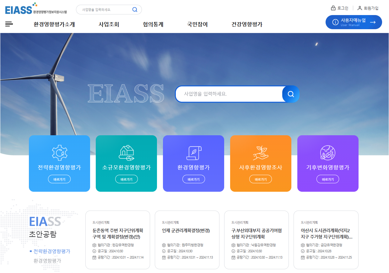 환경영향평가 정보지원시스템은 환경 보호를 목적으로 환경 영향을 체계적으로 평가하고, 이를 지원하는 다양한 정보를 제공하는 온라인 플랫폼입니다. 이 시스템은 개발 사업이 자연과 생태계에 미치는 영향을 사전에 예측하고 관리할 수 있도록 도와줍니다. 개발자가 사업 초기 단계부터 환경적 영향을 파악하고 적절한 대응 방안을 마련할 수 있는 필수적인 도구입니다.