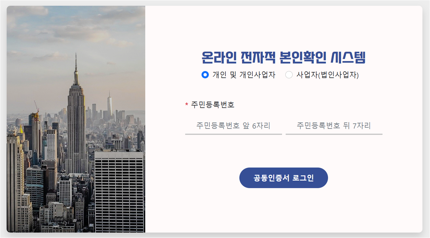 이후 사용자는 제공되는 인증 방식 중 하나를 선택할 수 있습니다. 예를 들어, 공인 인증서나 생체 인식 방법 중 본인이 선호하는 방식을 사용할 수 있습니다.